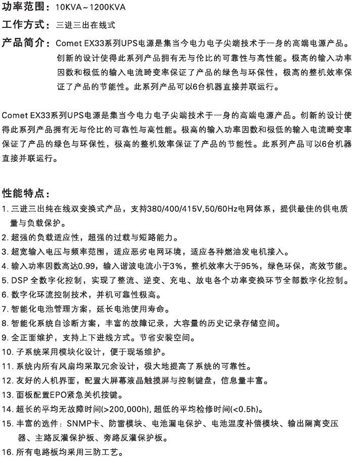 浦洛斯实业有限公司 >> EX系列UPS电源