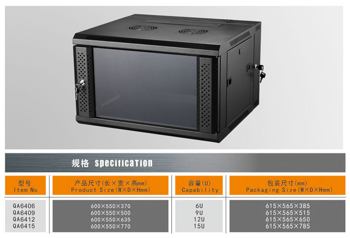 分体结构,方便后部操作。快开侧门,方便安装和维修。上下部走线通道,侧门可加锁。可选择轴流风机,2对竖式方孔条。